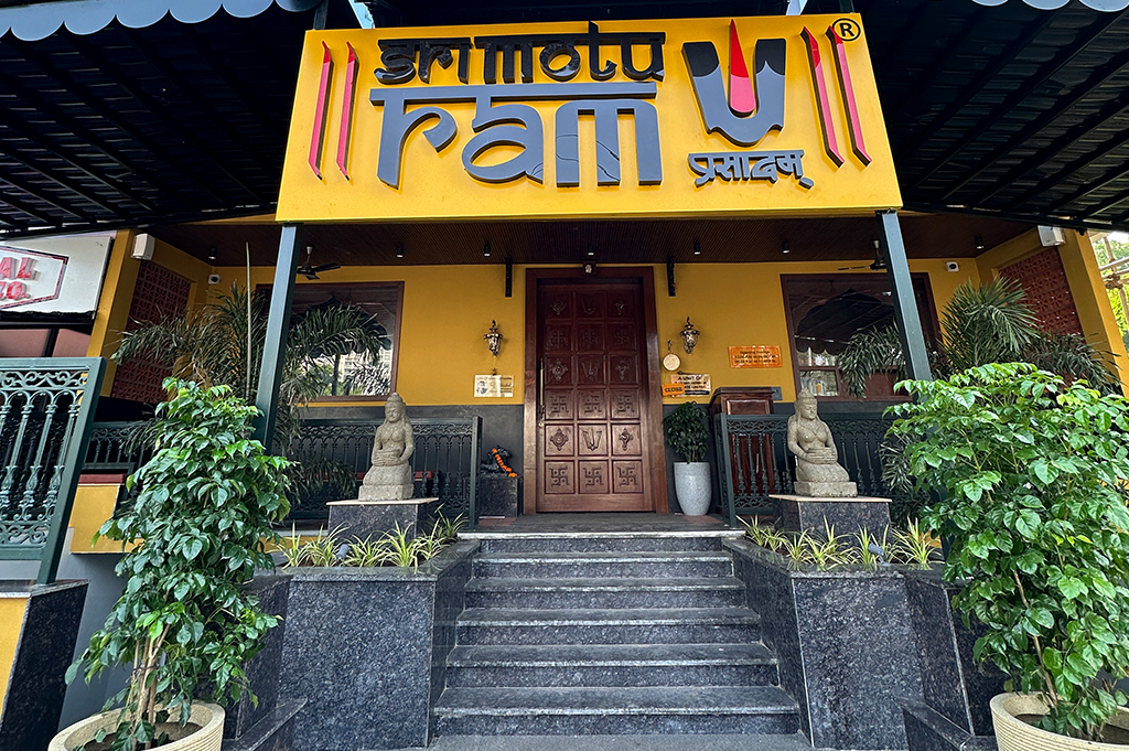 Sri Moturam Prasadam offers a wide variety of Indian cuisine inspired by 5000 years old civilization, offering the temple bhog food to the guests. The menu is exclusively curated by Chef Abhishek Sharma, a renowned chef consultant with 21+ years of experience in the food and beverages industry. The menu is inclusive of 20 thalis inspired by various states of India like Marwari Bhog, Venkateshwara Bhog, Jodhpuri Bhog, Bhojpuri bhog, Ayyapan Bhog, and Ala Carte menu which includes various dishes from Indian cuisine including seasonal delicacies like sarsoon ka saag, bajre ki khichdi, sav tamatar, makke di roti.